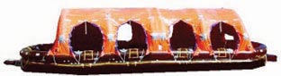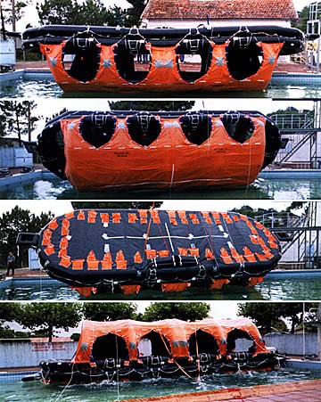 Samouspravljiva splav za bacanje kapaciteta 50 osoba posebno je izvedena kako bi se